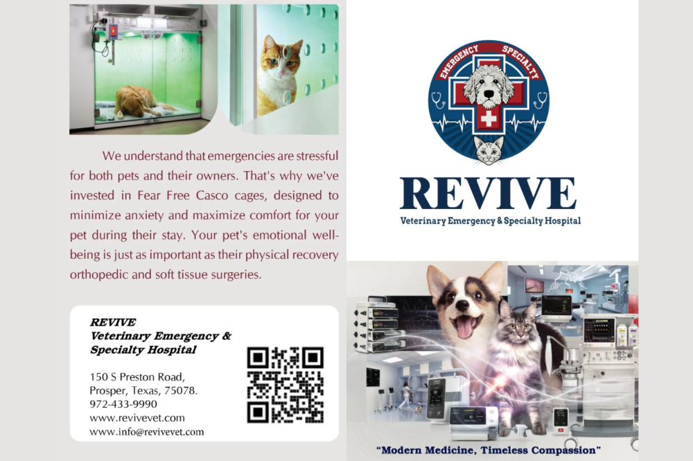 Emergencies don’t wait, and neither should your pet’s care. Revive Veterinary Emergency & Specialty Hospital is open 24/7 to provide expert, compassionate treatment for pets in urgent need, at 150 S. Preston Rd., Prosper.