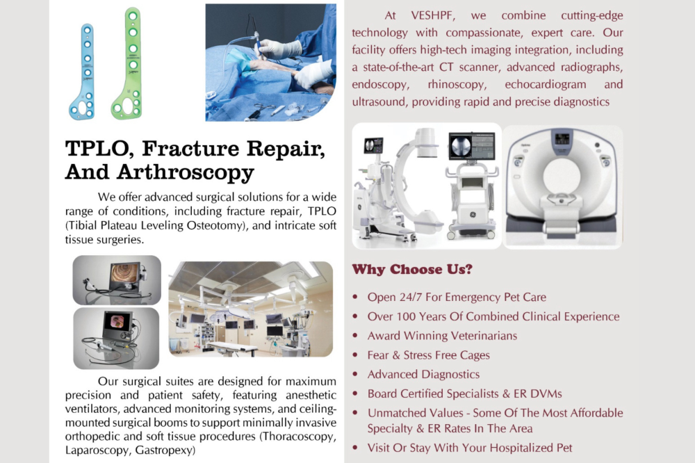 - 15 % off hospitalization and surgery for pets needing knee or anterior cruciate ligament procedures (TPLO surgery with Arthroscopy)