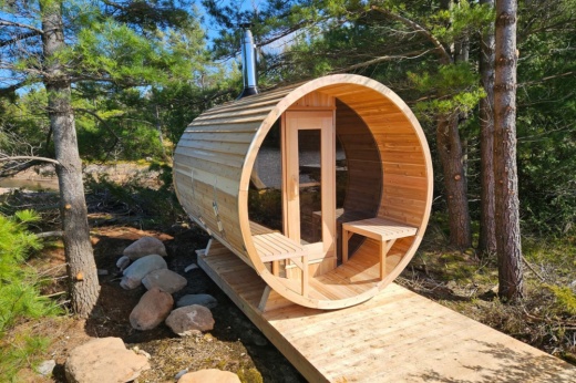Every sauna is customized to fit the customer’s space and style. Rolling Saunas offers electric or wood-burning heat, various sizes and designs, from sleek barrel saunas to cube-style retreats, in partnership with LeisureCraft.